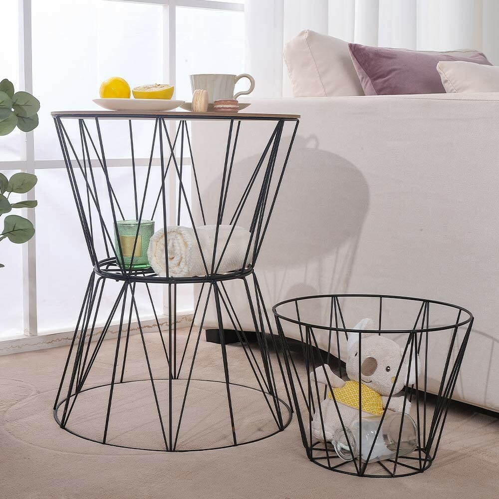 End Table Set Of 2 Coffee Table Night Stand With Metal Storage Basket 17 X 2 Ebay